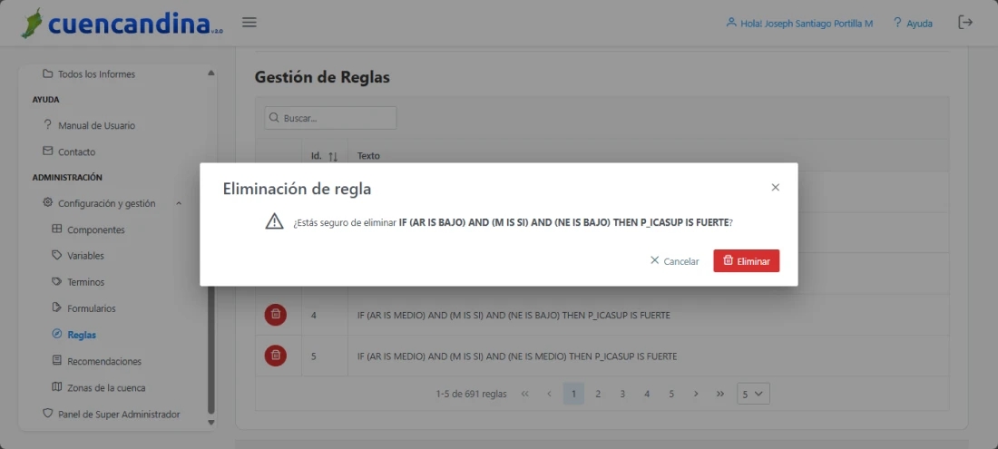 Confirma la supresión de la regla de decisión dando clic en el botón Eliminar.