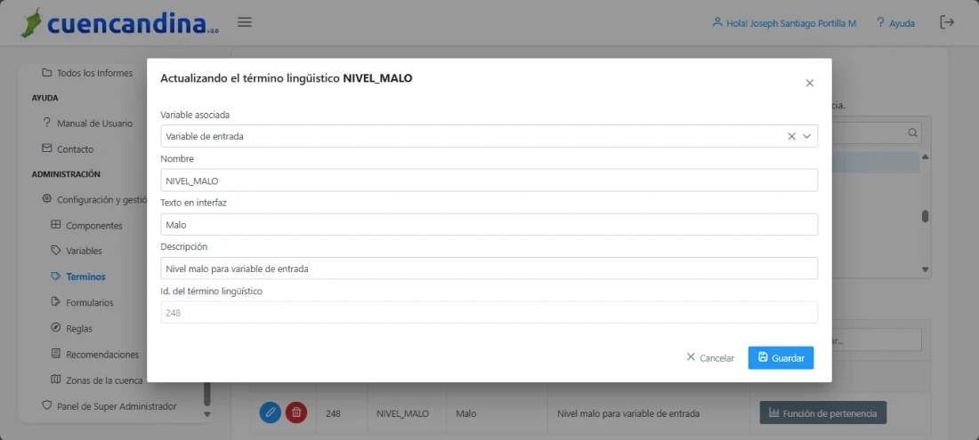 A continuación, se despliega una ventana emergente donde tendrás que ingresar las nuevas propiedades del término lingüístico.