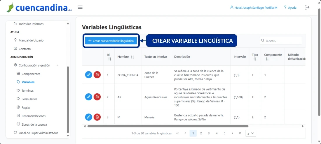 Pulsa el botón Crear nueva variable lingüística ubicado en la zona de trabajo central