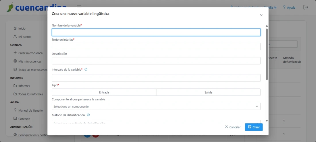 A continuación, se despliega una ventana emergente donde tendrás que ingresar la información de las propiedades de la variable lingüística a crear