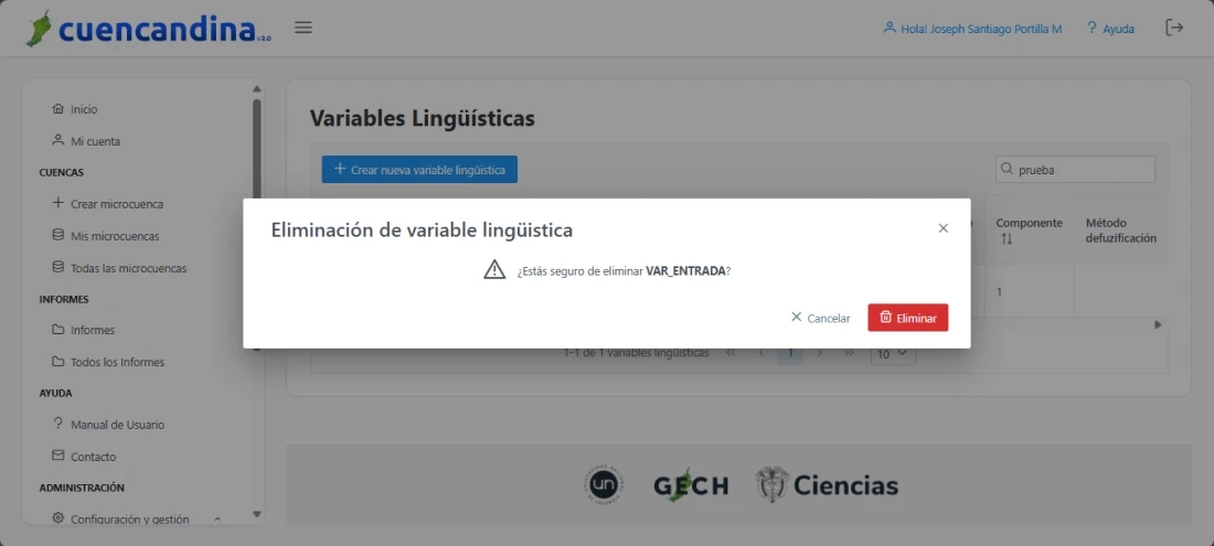Confirma la supresión de la variable lingüística dando clic en el botón Eliminar.