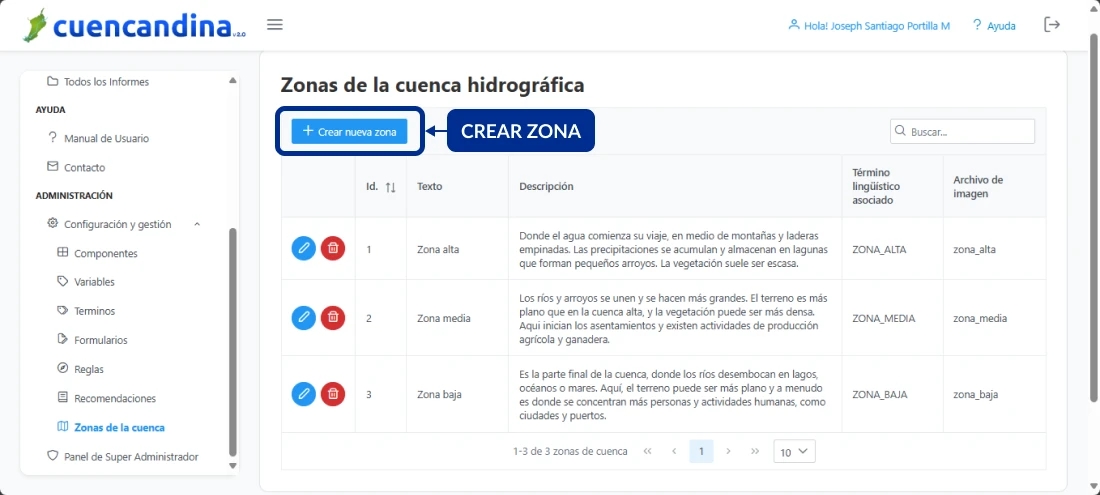 Pulsa el botón Crear nueva zona ubicado en la zona de trabajo central