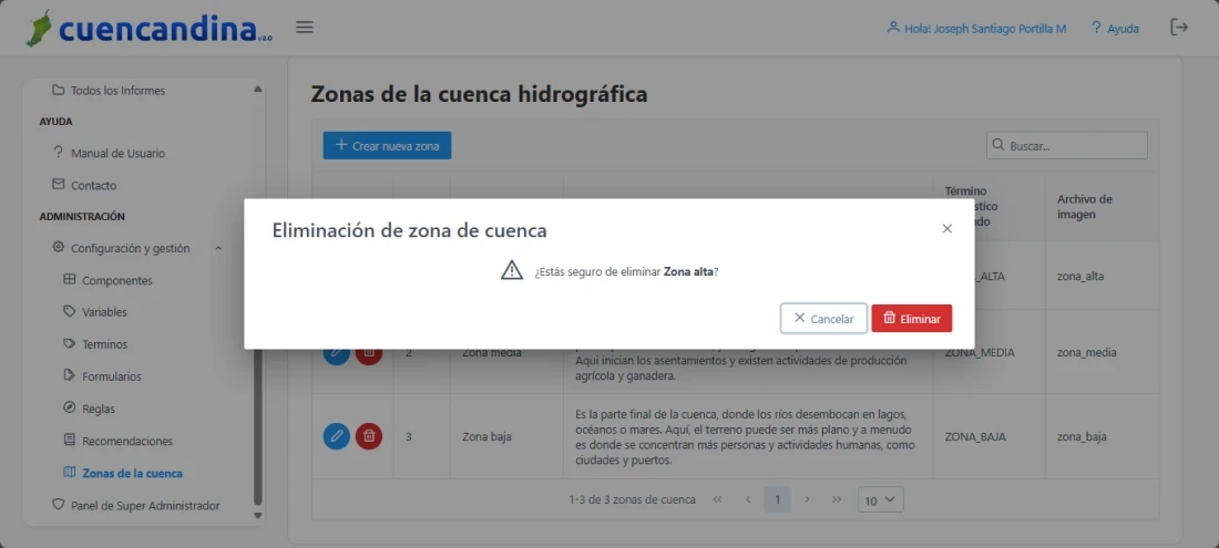 Confirma la supresión de la zona dando clic en el botón Eliminar.