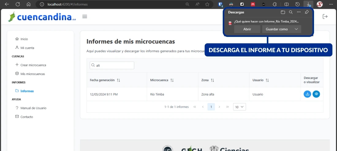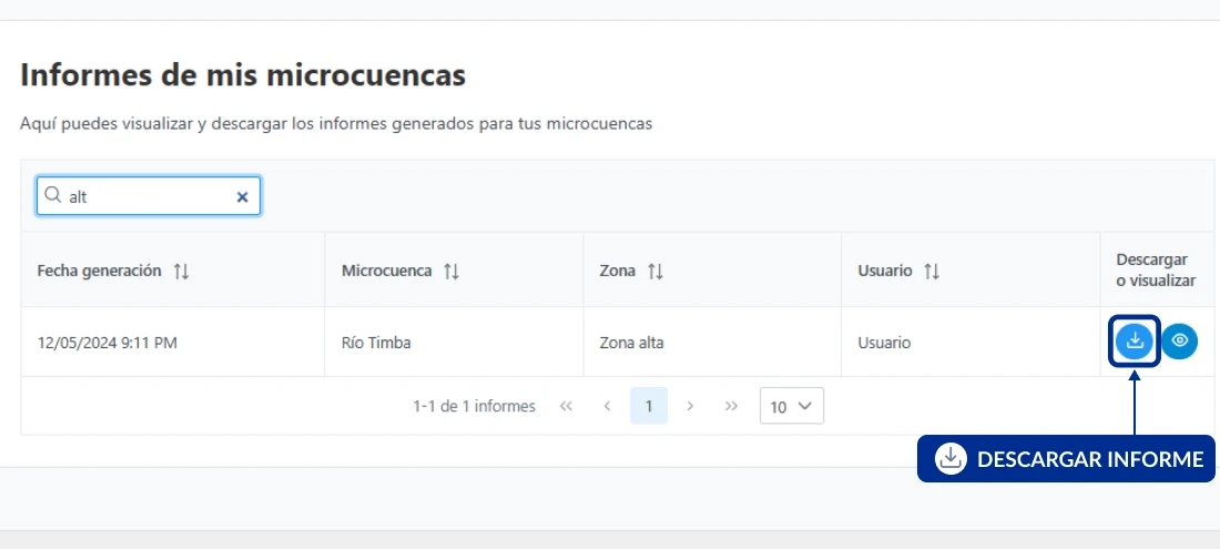 ¿Cómo descargo un informe que generé para una microcuenca?