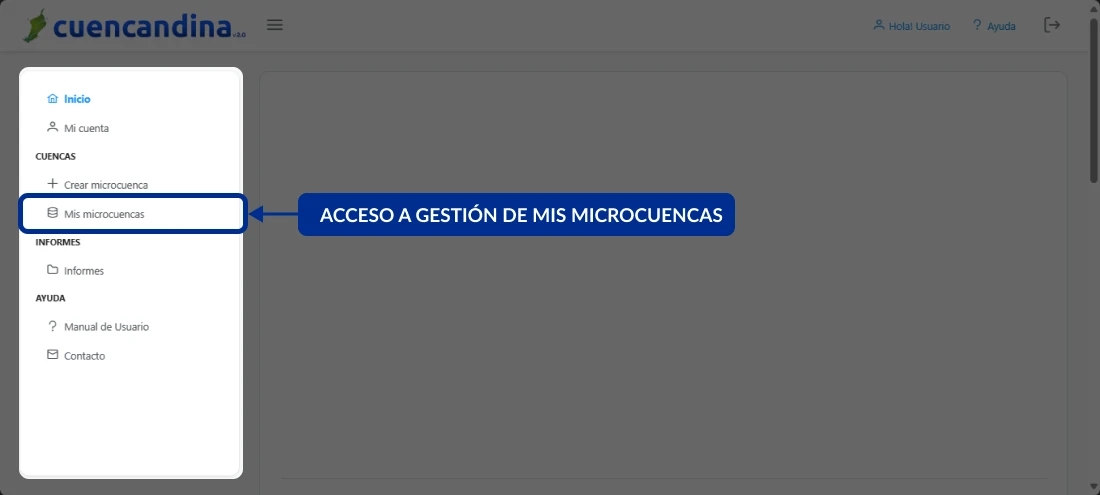 Accede a la opción de Mis microcuencas en el menú de navegación izquierdo.